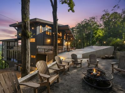 Pinnacle's outdoor amenities are designed to maximize your enjoyment of the stunning natural surroundings. The primary deck, accessible through the living room, offers stellar views and ample outdoor seating around a cozy gas fireplace, perfect for relaxing with family and friends. This deck is also equipped with a gas grill, mini fridge, and plenty of countertop space for outdoor cooking and dining!